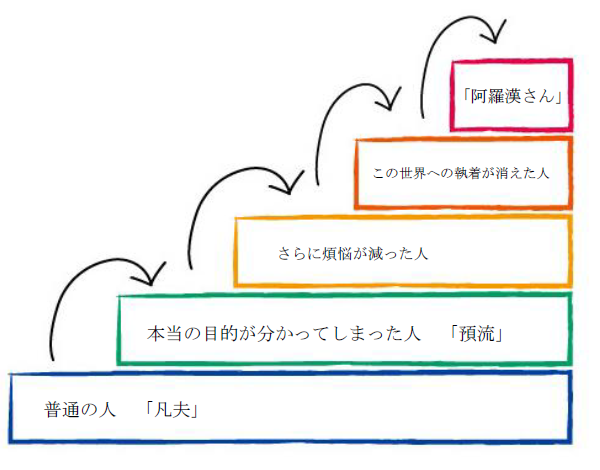 ゴールは、「阿耨多羅三藐三菩提」と呼ばれる状態です。 そうなった人は阿羅漢さんと呼ばれます。 いきなりは難しいので、少しずつ瞑想の練習をすると、 意味が分かってきます。
